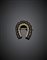 Spilla in oro giallo 333/1000 a ferro di cavallo con piccole perle e agate, g...