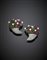 Orecchini in oro bianco e giallo a forma di cornucopie con smeraldi rubini e...