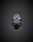 Anello in oro bianco con diamanti a contornare uno zaffiro a cuscino di ct....