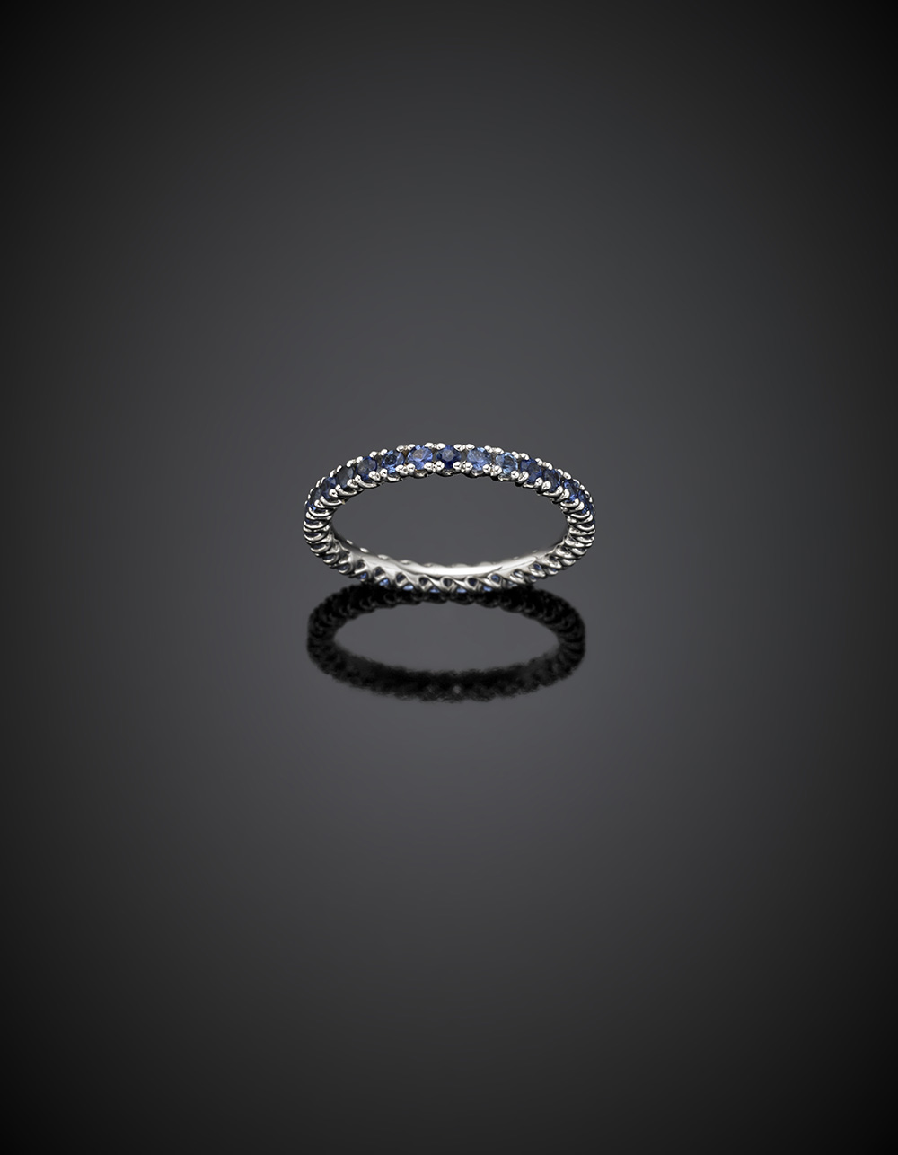 *DI GREGORIOFedina eternity in oro bianco e zaffiri, g 1,81 misura 14/54....