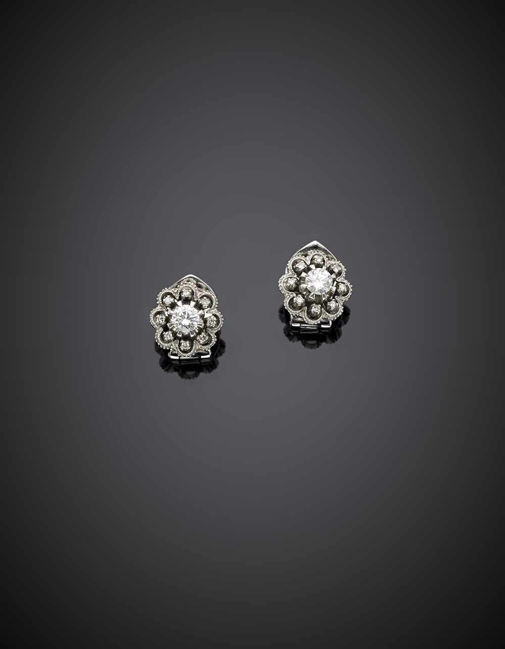 White gold diamond earrings with the two central diamond ct. 0.35 circa each, diam. mm 11.60, g 6.76.