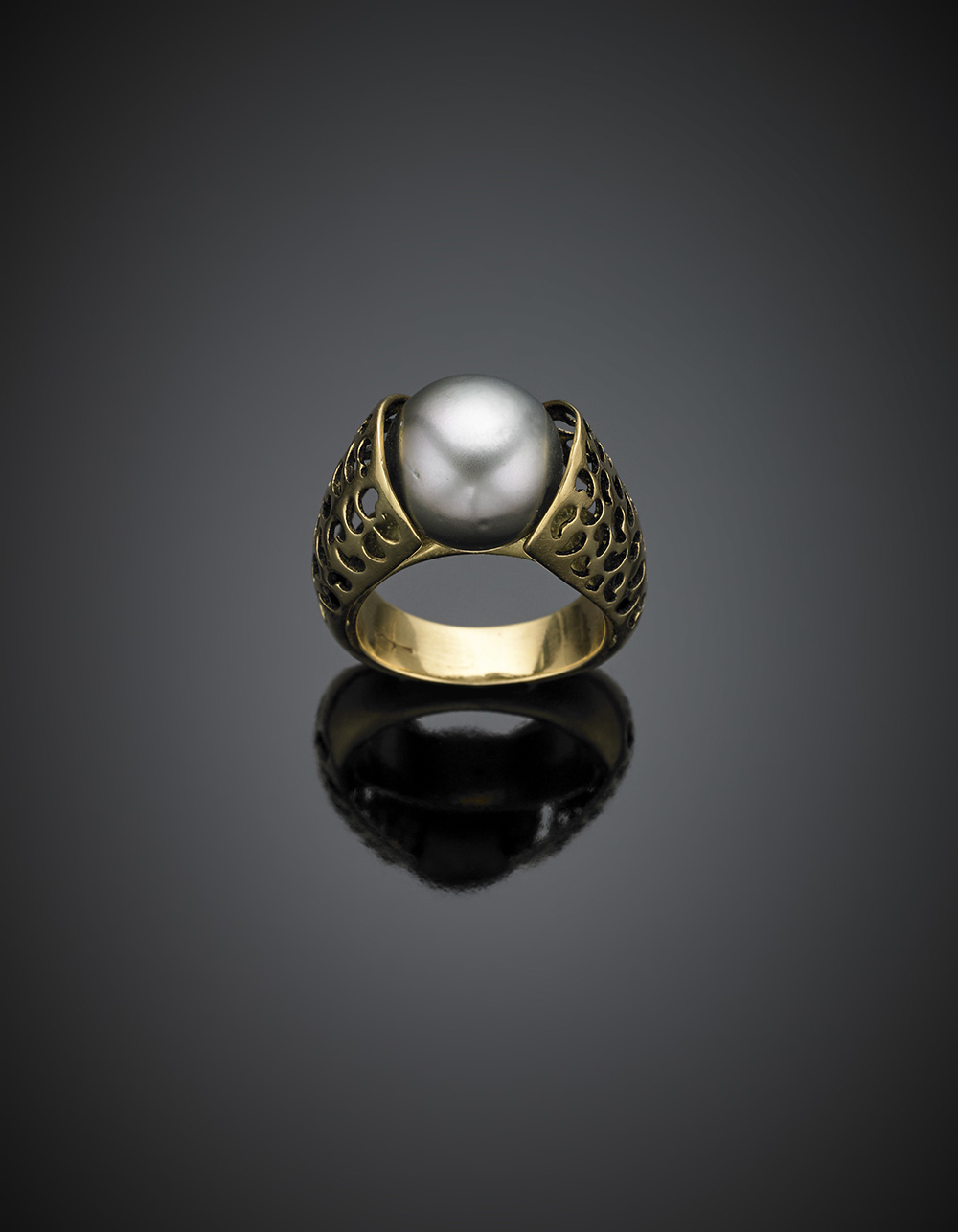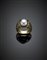Anello in oro giallo traforato con perla coltivata nera Tahiti, g 15,47...