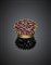 Anello in oro giallo con gambo a più fili rifinito con rubini a cuscino e...