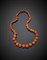 Collana in corallo arancione a scalare con chiusura in argento dorato e cabochon di corallo, boules da mm 6,35 a mm 14,65 circa, g 88,08, lungh. cm 51 circa.