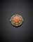 Broche in oro giallo con perle e diamanti a contornare un corallo cabochon...