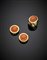 Demi-parure in oro giallo e corallo arancione variegato, composta da anello e orecchini a lobo con clip, orecchini diam. cm 2 cm, complessivi g 34,86 misura 14/54.