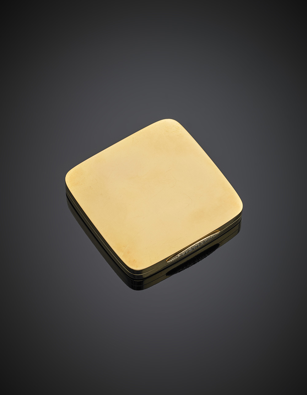 Lot 799 | *Portacipria quadrato con spigoli arrotondati in oro giallo con fregio in oro...