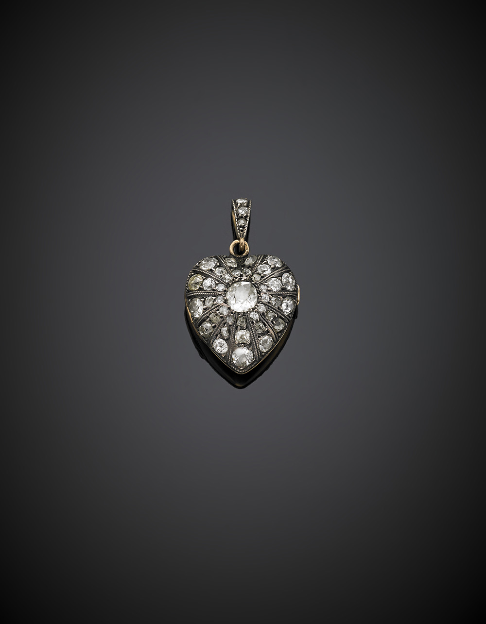 Lot 815 | Portapillole/pendente a cuore in oro giallo e argento con diamanti, centrale...
