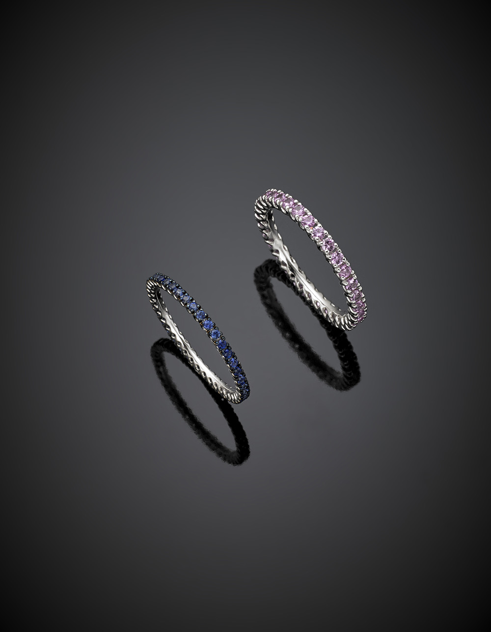 *DI GREGORIOLotto di due fedine eternity in oro bianco con zaffiri e...