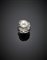 Anello in oro bianco con diamanti su motivo a foglia a contornare perla...