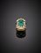 Cabochon ct. 8 circa emerald round and baguette diamond bi-coloured gold ring, diamonds, in all ct. 3.50 circa g 14.94 size 13/53.