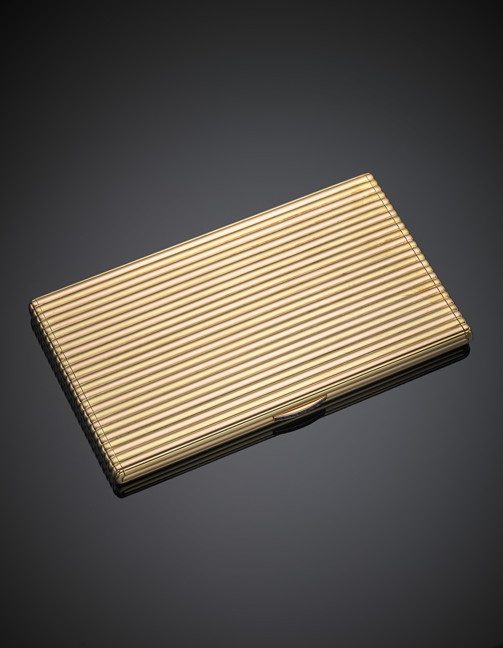 Lot 881 | Portasigarette godronato in oro giallo e rosso con chiusura rifinita in...
