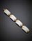 Bracciale "Chandra" in oro giallo e placche di porcellana bianca, g 103,18, lungh. cm 20,50, h cm 2,40 circa. Firmato Bvlgari.