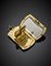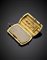 Trousse portacipria in oro giallo con perline e diamanti, specchio e tre scomparti, zaffiri cabochon sulle chiusure, n°43841, n°32847, g 194,72, lungh. cm 10,30, largh. cm 5,70, h cm 1,40 circa. Marchi di importazione francesi, orefice francese CH in ovale.