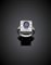 Anello in oro bianco con zaffiro di ct. 2,10 circa ovale e diamanti baguette...