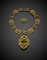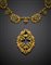 Yellow gold turquoise stamped out scrollwork jewellery set comprising necklace, adjustable pendant