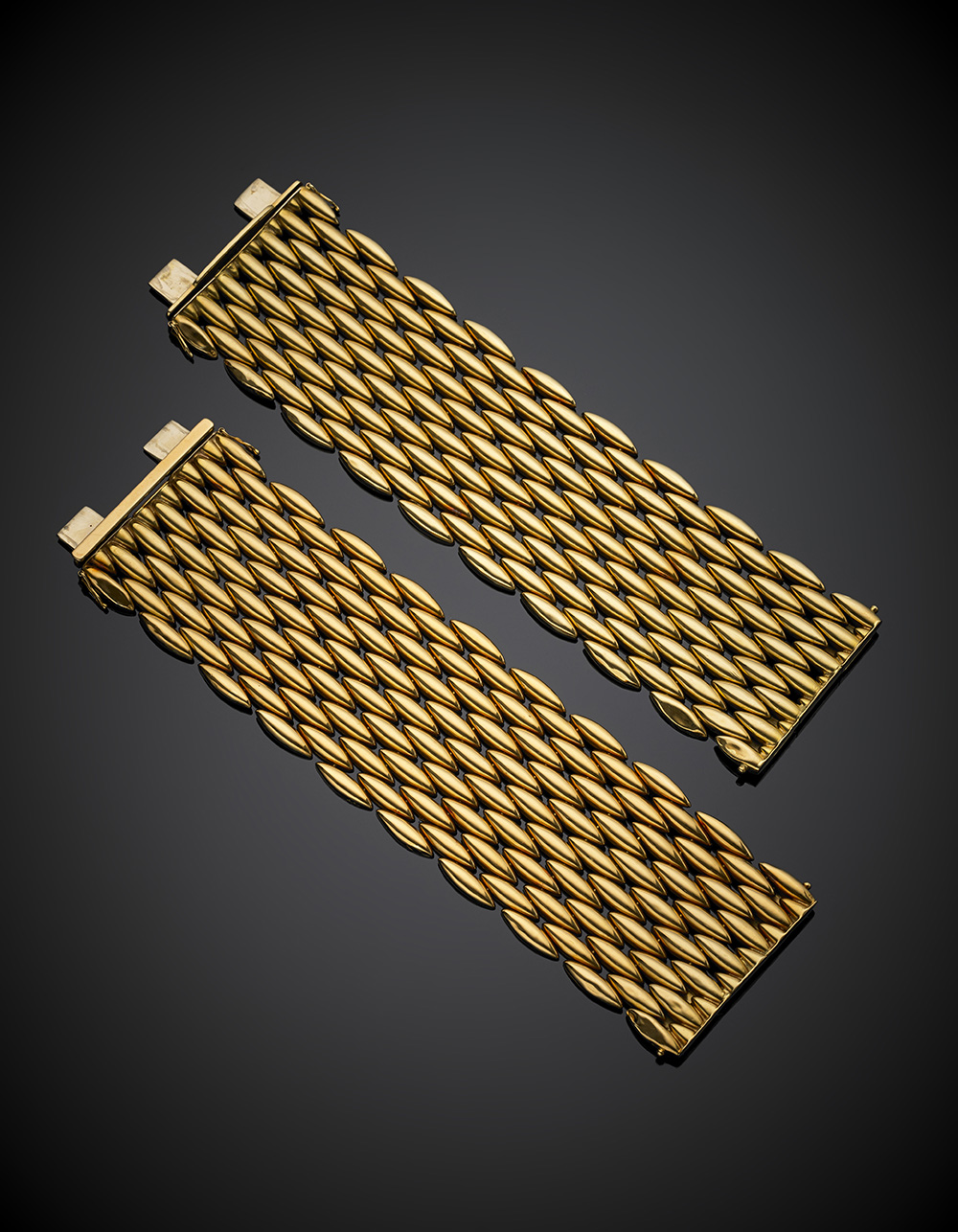 Lot 916 | CARTIERDue bracciali gemelli in oro giallo a maglie modulari, il primo n°...