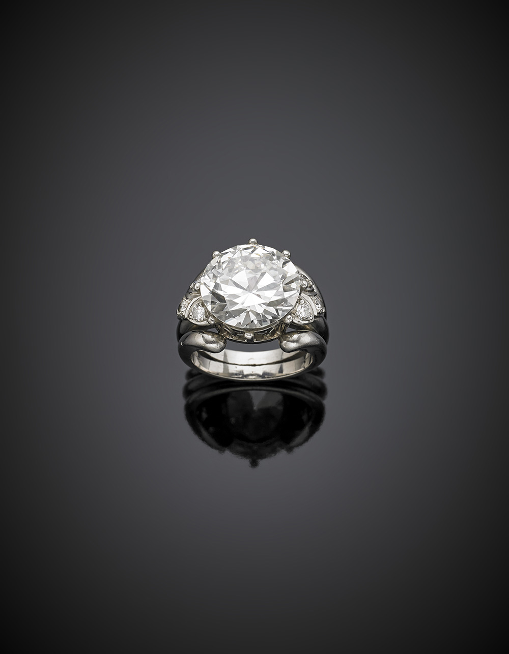 WOLFERS FRERESAnello in platino con diamante rotondo centrale di ct. 10,27 e...
