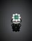 Anello in oro bianco con otto diamanti rotondi a contornare uno smeraldo...