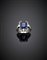 Anello in oro bianco con diamanti baguette e rotondi a contornare uno zaffiro...