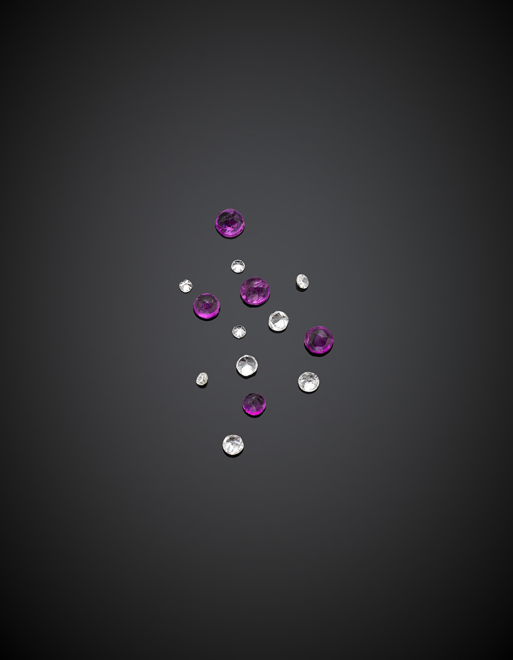 Cartina con diamanti e rubini rispettivamente per complessivi ct. 0,23 circa e per complessivi ct. 0,75 circa.
