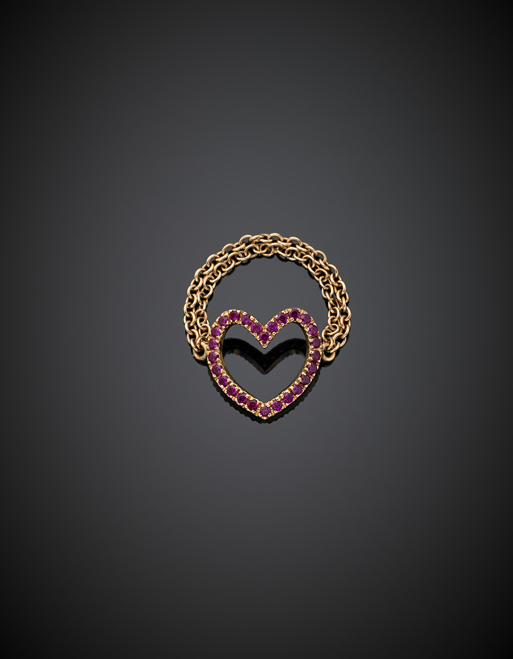 *DI GREGORIOAnello in maglia a rolò in oro rosa con un cuore in rubini...
