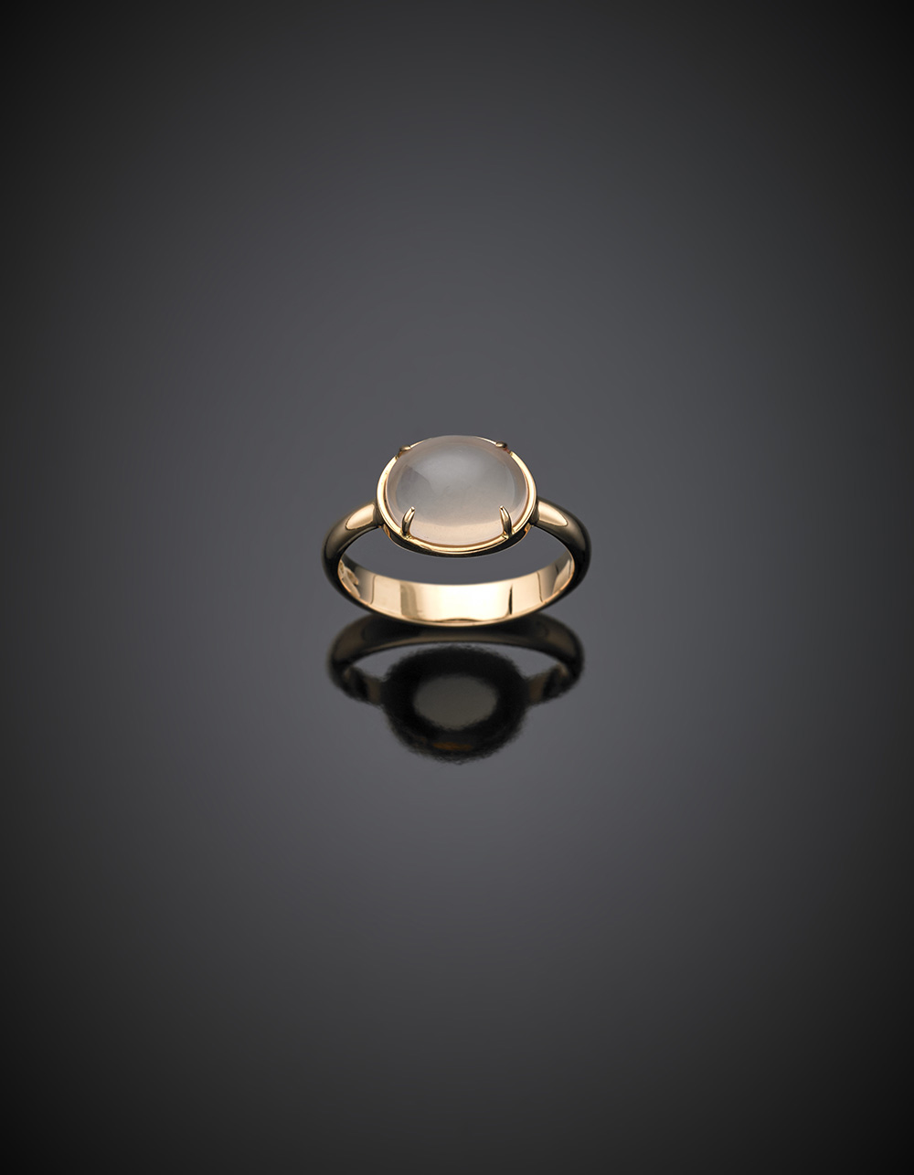 *DI GREGORIOAnello in oro rosa con quarzo rosa ovale cabochon, g 4,06 misura...