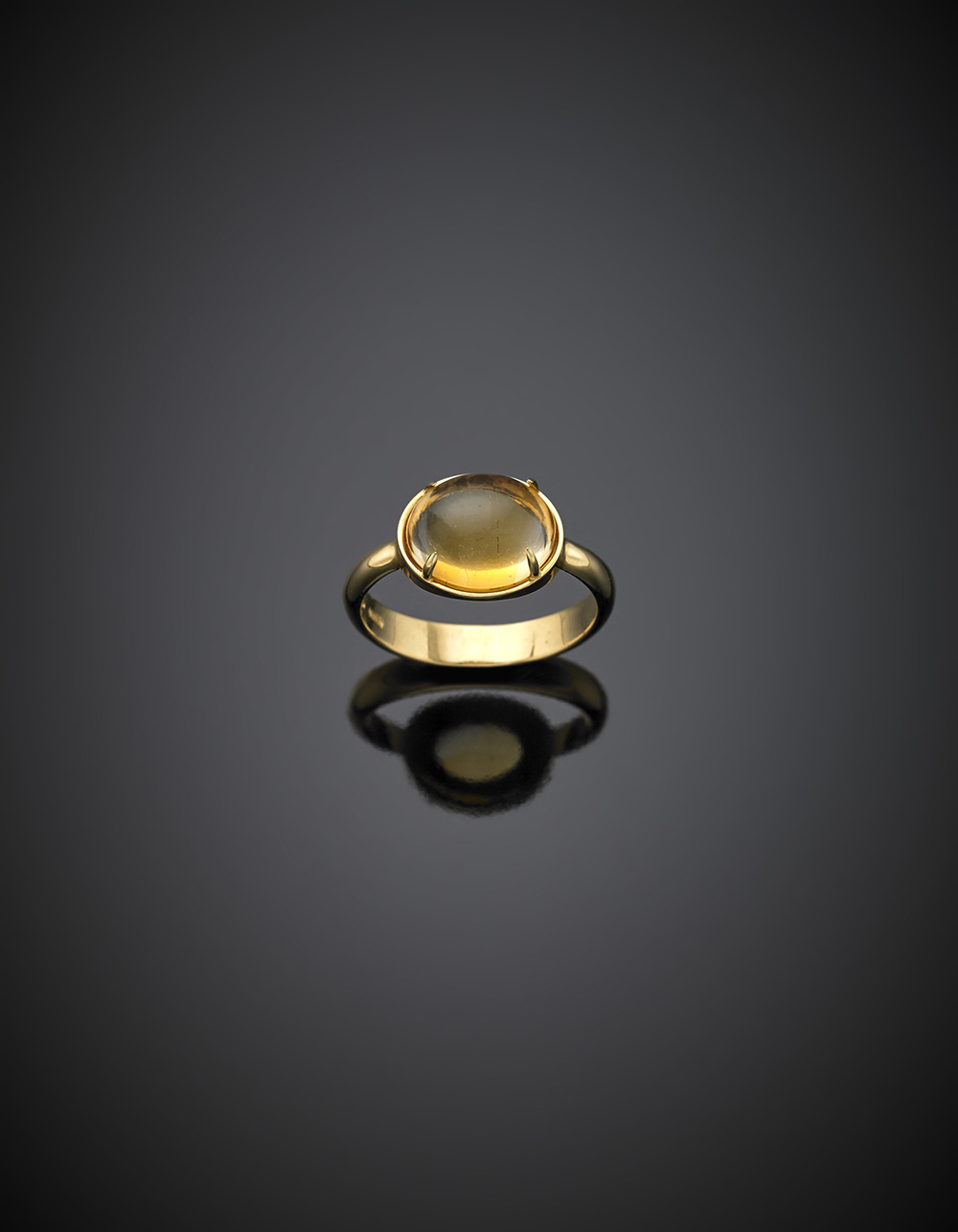 *DI GREGORIOAnello in oro giallo con quarzo citrino ovale cabochon, g 3,91...