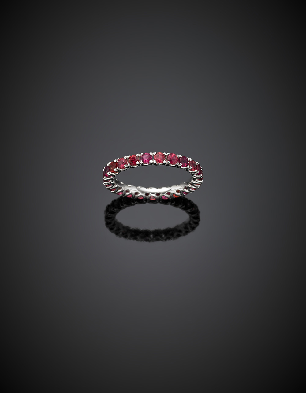 Fedina eternity in oro bianco e corindoni arancioni, g 2,27 misura 12/52. Garanzia originale