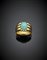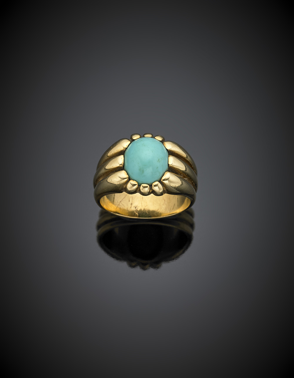 Lot 1090 | Anello scanalato in oro giallo con turchese ovale cabochon, g 12,85 misura...