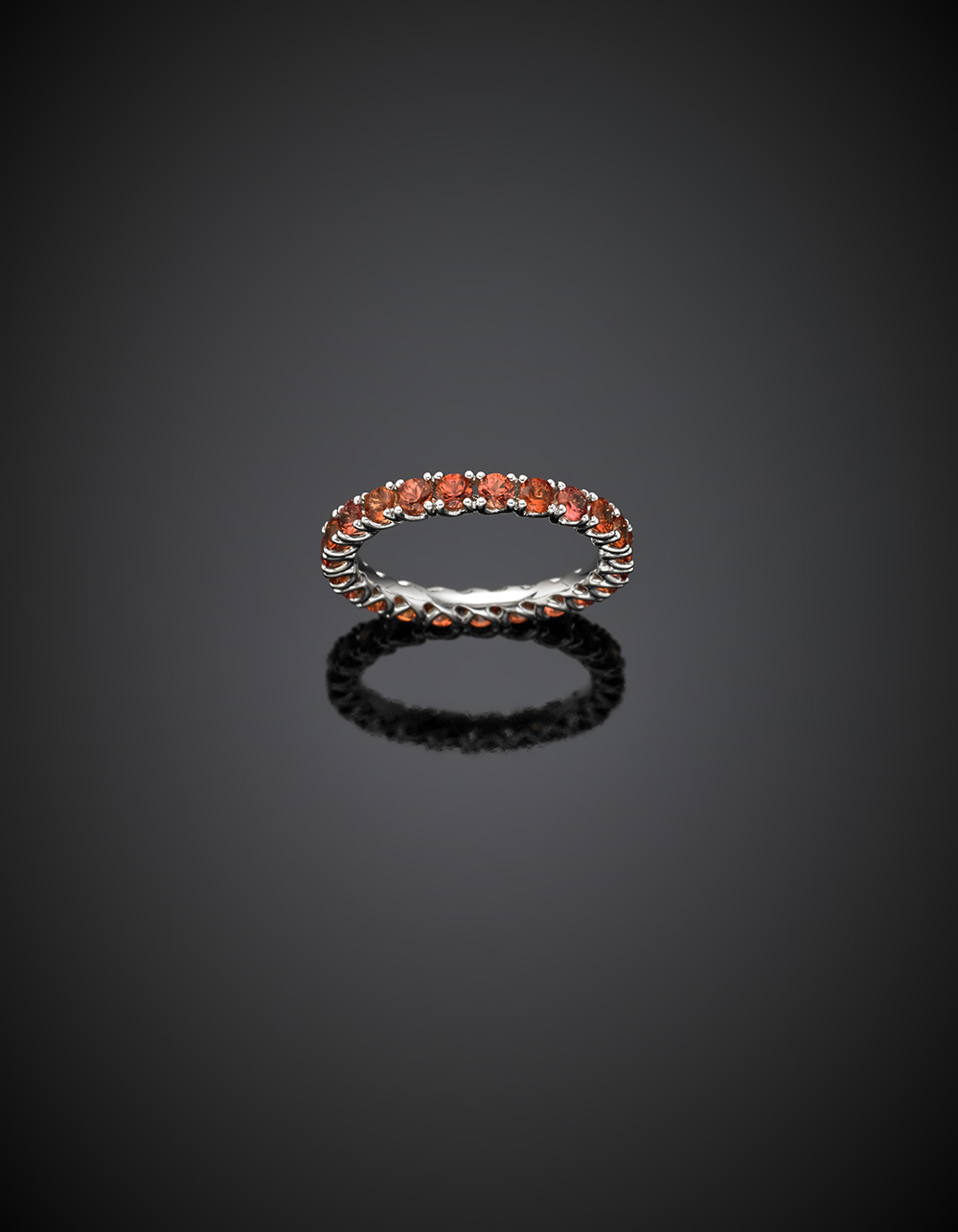 *DI GREGORIOFedina eternity in oro bianco e corindoni cognac, g 2,19 misura...