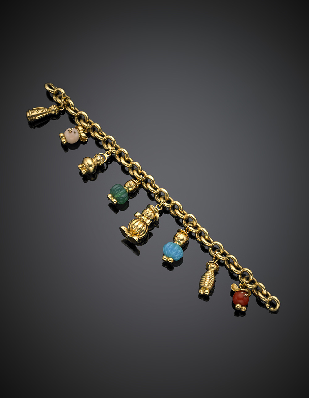 *WEINGRILLBracciale a catena in oro giallo con charms in oro rifiniti con...