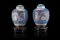 Coppia di potiche in porcellana policroma decorate con fiori, fenici e...