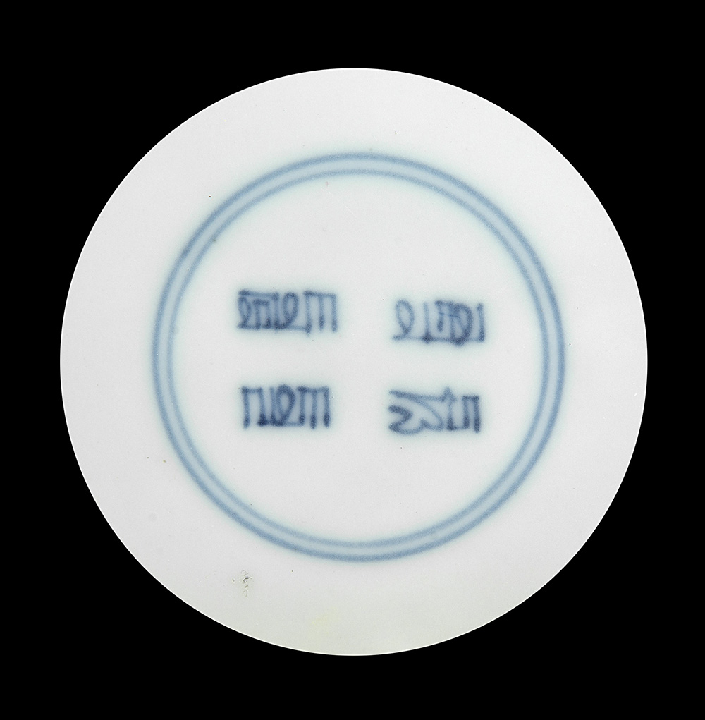 Candeliere in porcellana a invetriatura gialla con delicata craquelure, alla base marchio in tibetano in blu sottocoperta