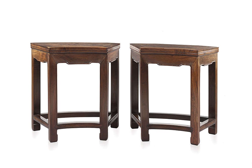 Lot 58 | Coppia di tavolini di forma sagomata in legno d'olmo con piano radicatoCina,...
