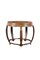 Tavolino tondo in palissandro con sostegni sagomati e raccordati e piano...
