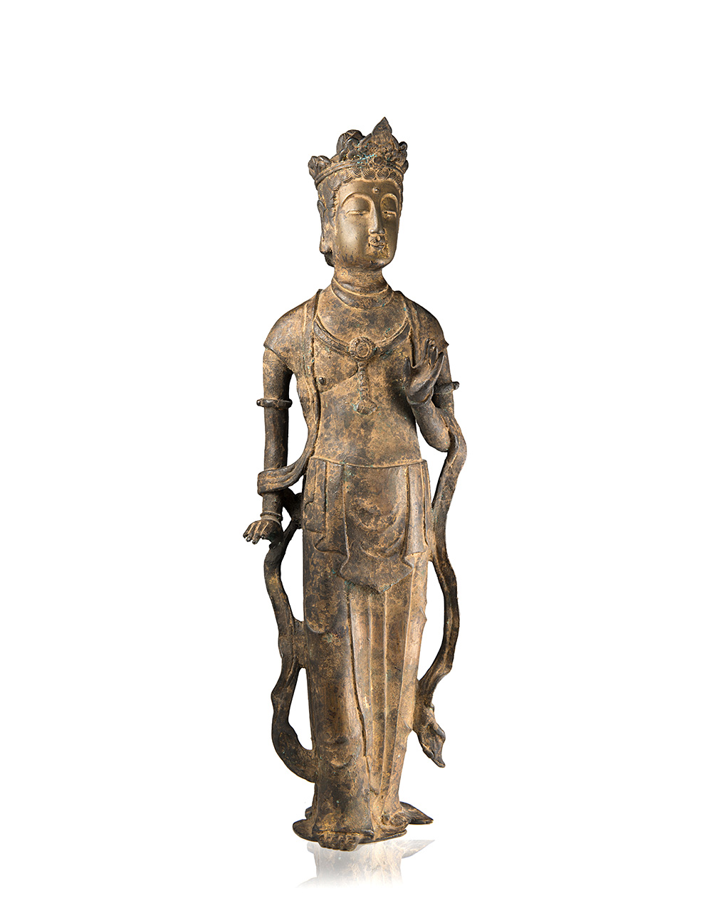 A gilt bronze model of Guanyin, with traces of lacquer