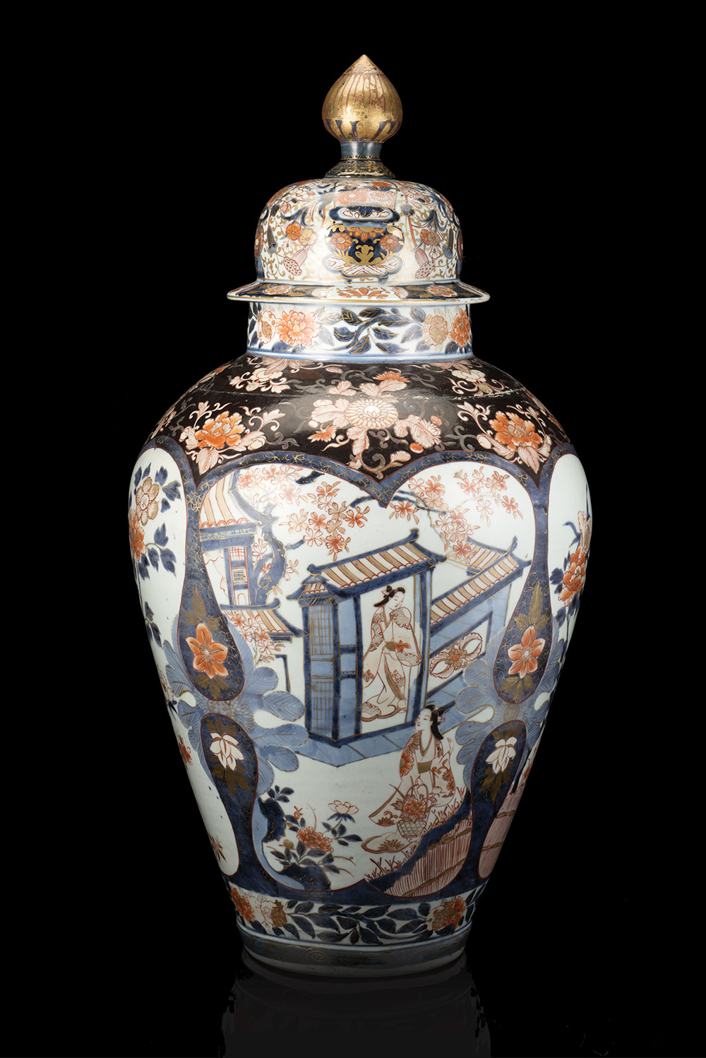 Potiche in porcellana con coperchio a decoro Imari (restauri)