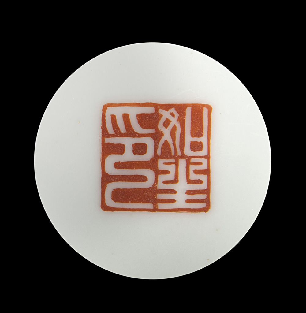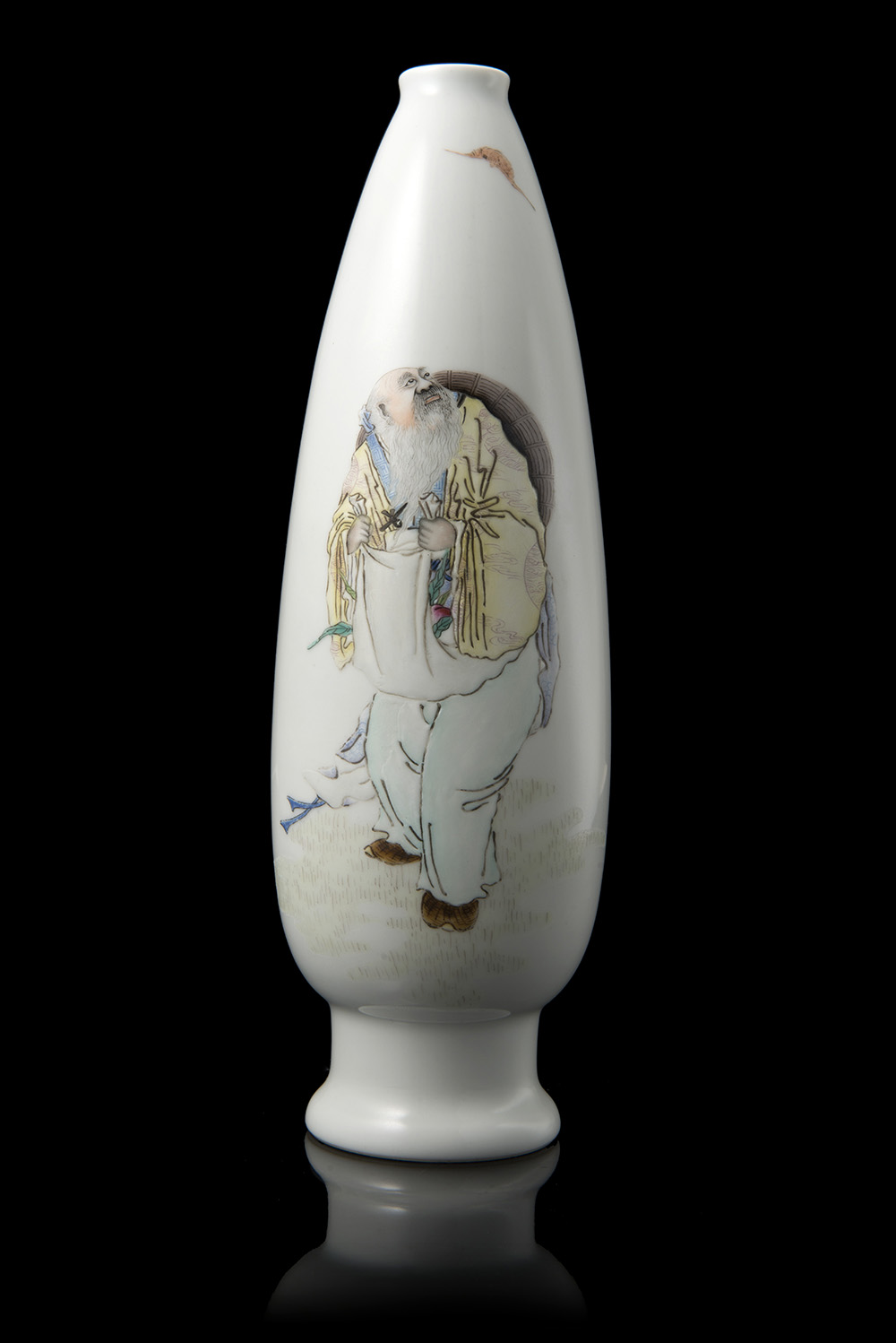Vaso in porcellana policroma decorato con saggio dalla lunga barba, marchio alla base