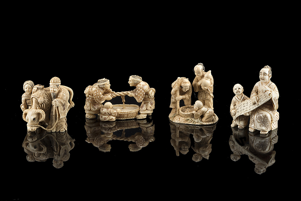 Quattro netsuke in avorio, con firmeGiappone, periodo Meiji...