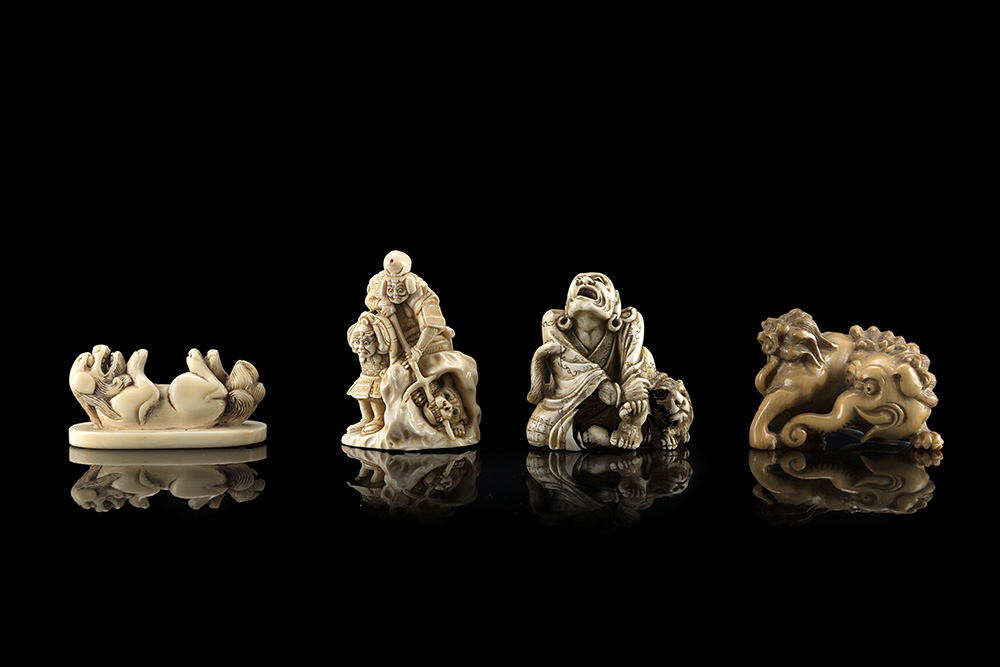 Quattro netsuke in avorio, con firmeGiappone, periodo Meiji...