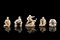 Cinque netsuke in avorio raffiguranti lottatori di sumo, con firme