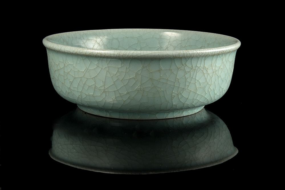 A turquoise-glazed brush washer with a suffused craquelure in the ru style