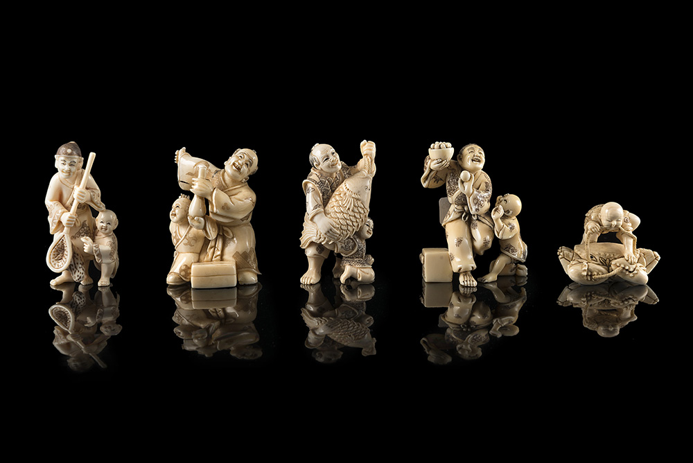 Cinque netsuke in avorio, con firmeGiappone, periodo Meiji (1868-1912)-ENFive...