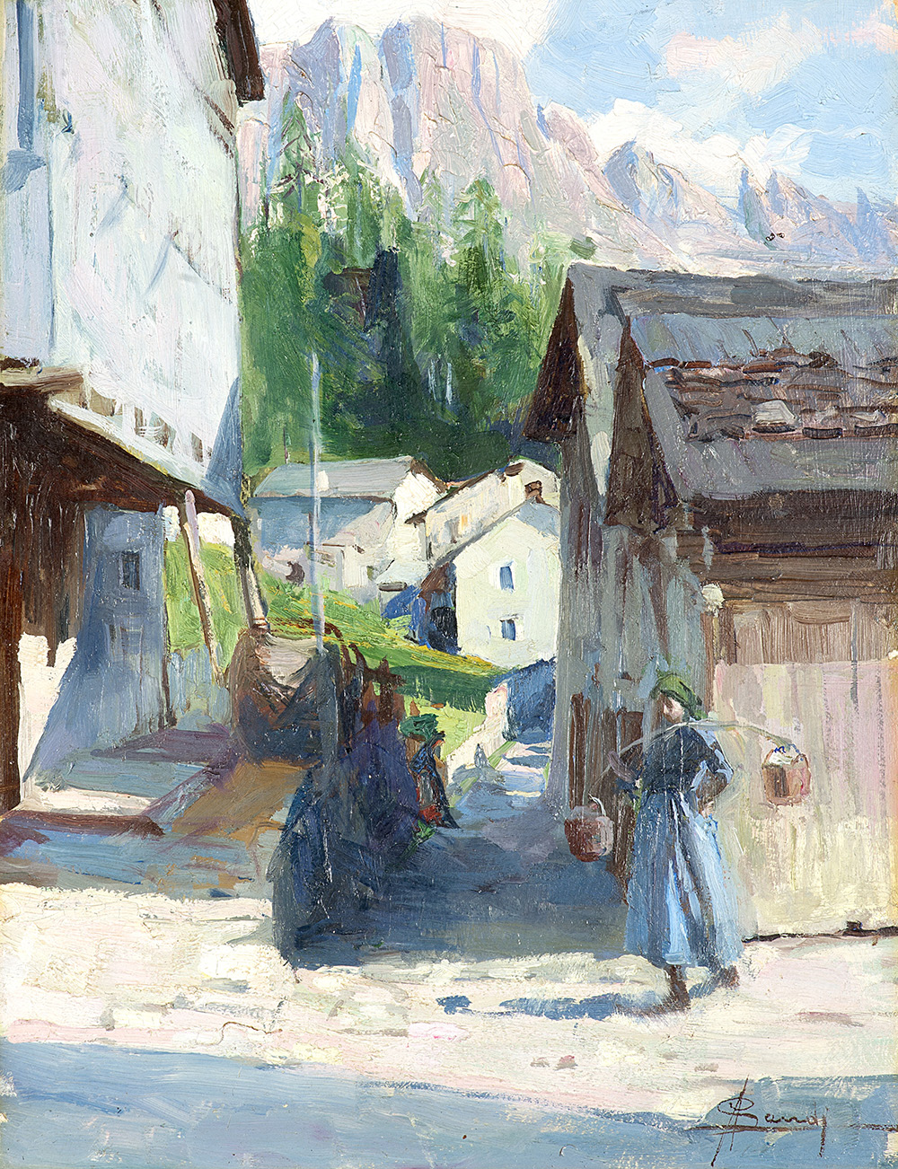 Angelo Landi (Salò 1879 - 1944)"Scorcio con villaggio dolomitico"olio su...