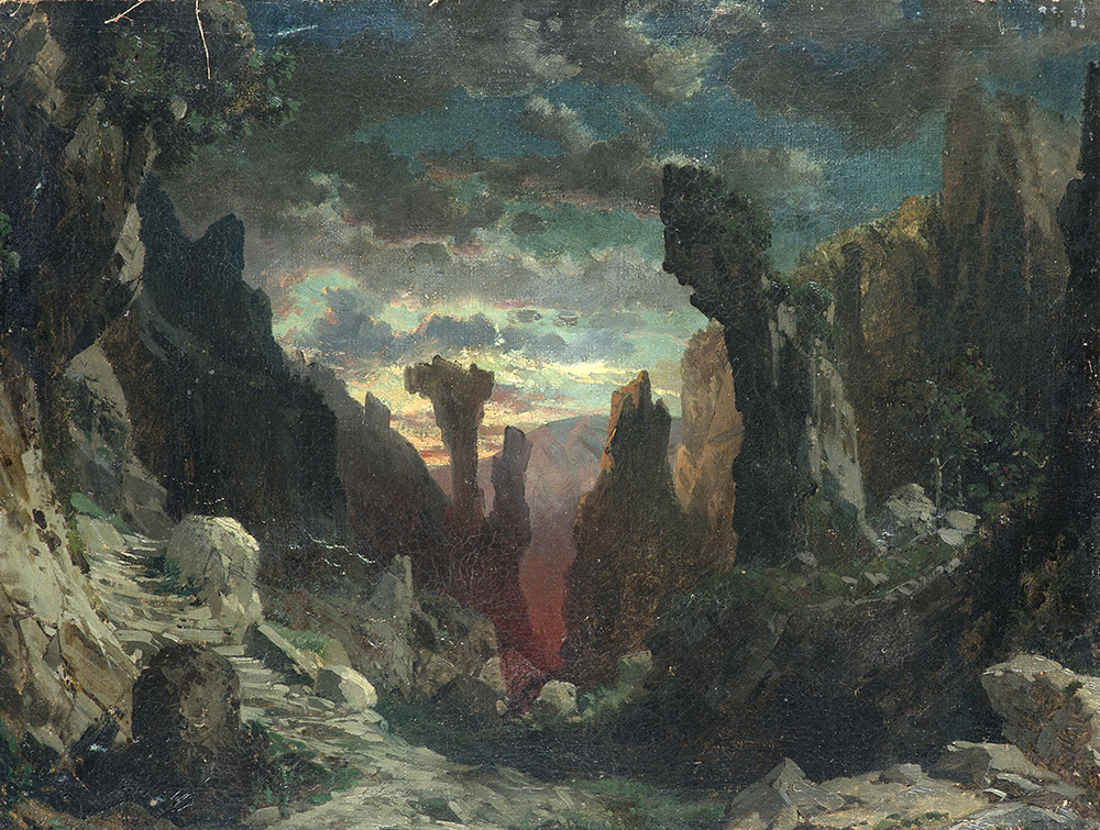 Anselm Feuerbach (Spira 1829 - Venezia 1880) (Attribuito) "Paesaggio montano"...
