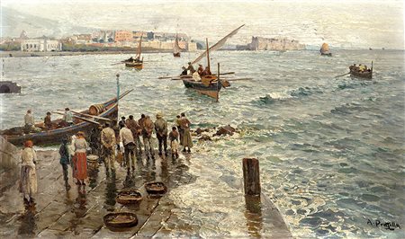 Attilio Pratella (Lugo 1856 - Napoli 1949)"Marina con barche di...