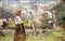 Leonardo Bazzaro (Milano 1853 - 1937)"Abbeverata" olio su compensato (cm...