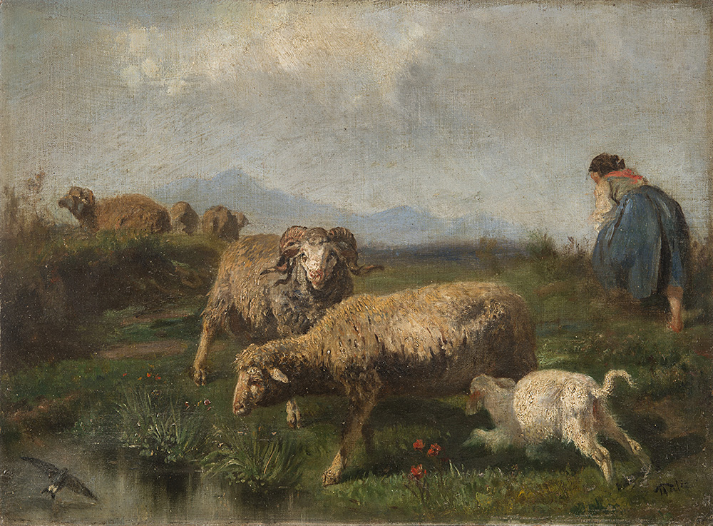 Giuseppe Palizzi (Lanciano 1812 - Passy (Francia) 1888)"Pastorella con...