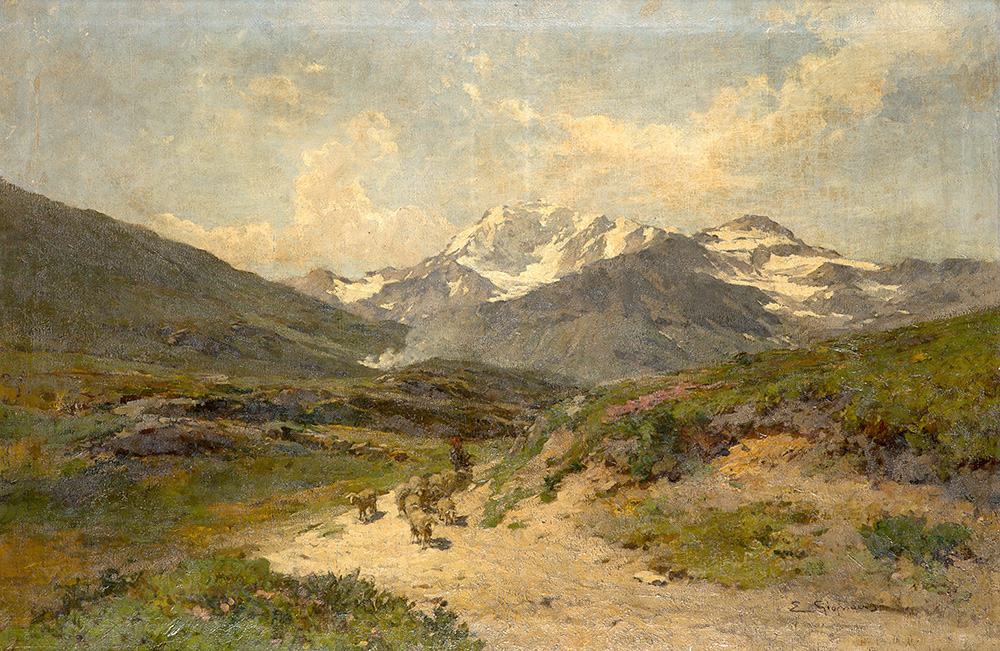 "Paesaggio montano con gregge"